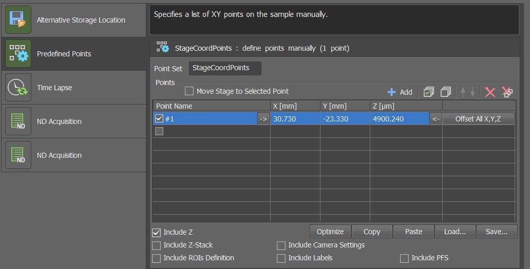 Addthe current position, as shown in the screenshot.Set the duration and acquisition period for your time course