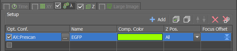 Next, configure the z-stack in the Z tab. The prescan should have a low z-resolution and wide z-range.