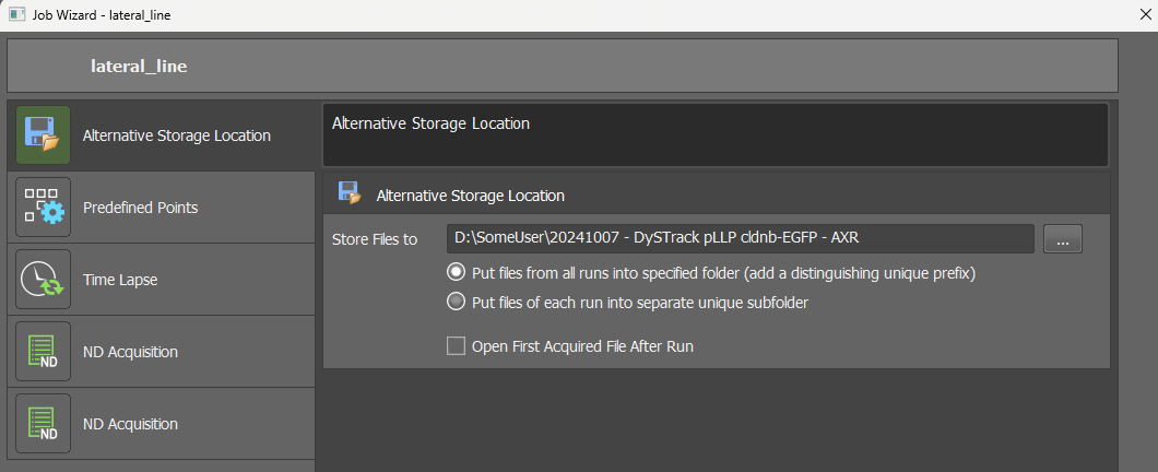 For the two radio buttons, keep the top option selected (all runs into specified folder). If you instead need to use automatically generated subfolders in your experiment, you must provide the