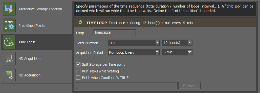 Split Storage per Time pointis ticked!Configure the settings for the prescan
